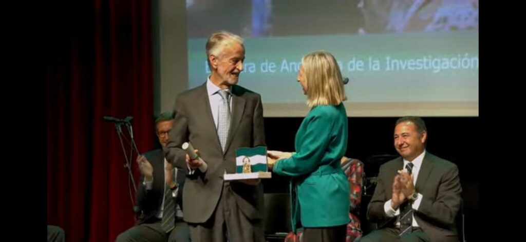 El doctor Francisco Trujillo, recibe la bandera de Andalucía de la Investigación, la Ciencia y la Salud